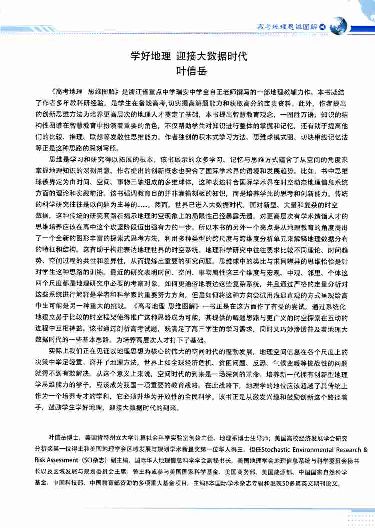 说明:叶信岳博士是美国权威地理信息技术专家,中国地理信息技术领军人物之一,他赞赏本书,并亲自为这本书写了热情漾溢的书评,刊登在《地理教学》2014年16期上,详见下述。