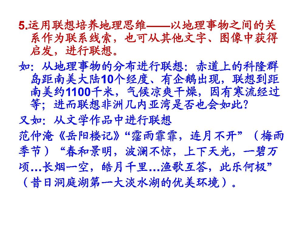 5.运用联想培养地理思维——以地理事物之间的关系作为联系线索,也可从其他文字、图像中获得启发,进行联想。