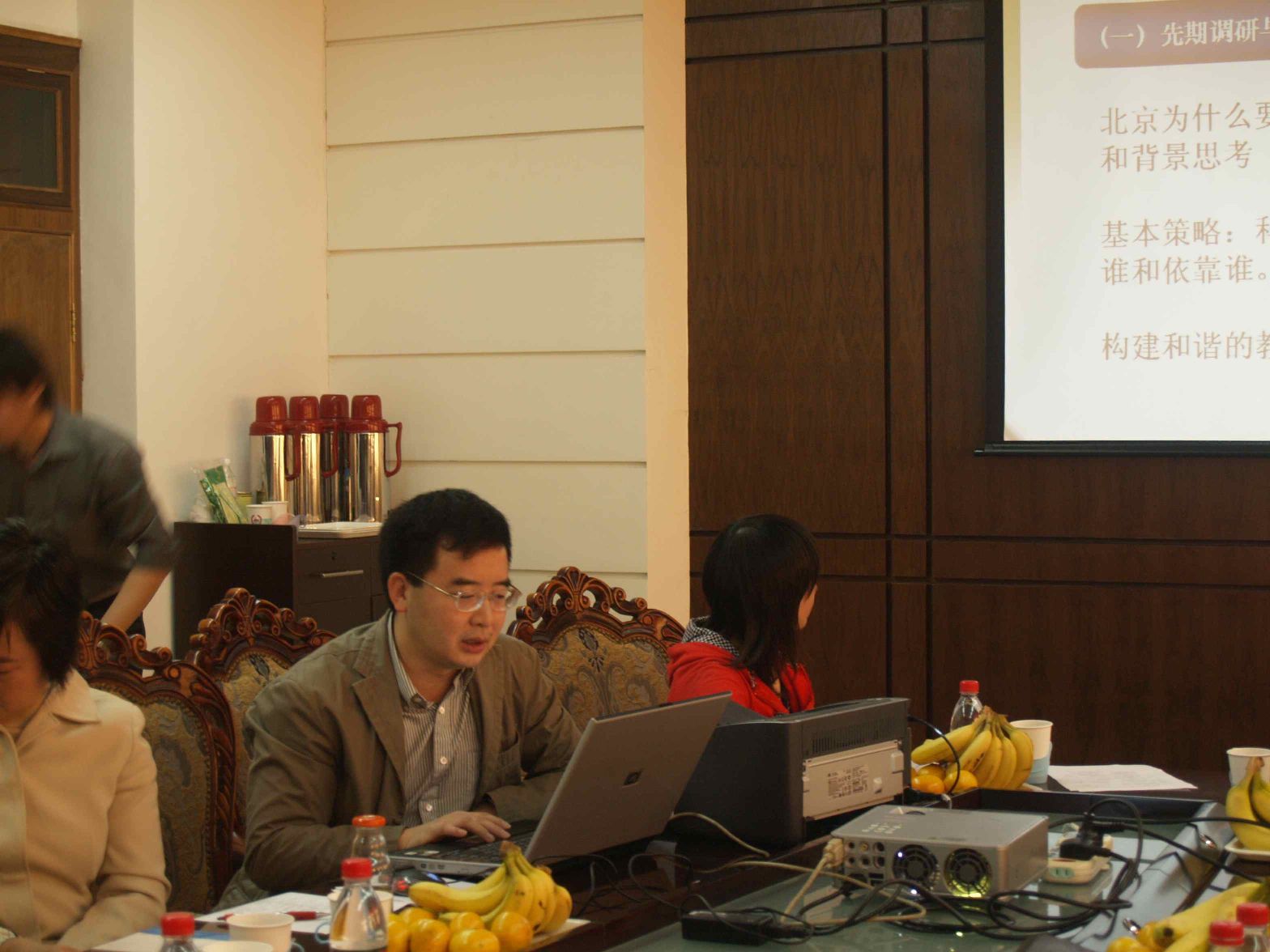 会议第一个主要议题是课程改革。首先发言的是北京市教委基础教育处处长李奕,他介绍了北京市实施高中新课程的基本情况、新课程实施后重点加强的几项工作及在课程设置、模块教学、考核评价等方面要高度关注的问题等,接着青岛九中张伦业老师评析了2008年高考(山东卷)文综地理部分试题,同时也谈了自己对新课标的体会和几点做法。人民教育出版社地理室高俊昌主任也对新课标谈了自己的观点和心得。以上几位老师对新课标的阐释给与会老师很大启发,并引起热烈讨论。刘继中、龙泉、徐勤、关克勇、孟胜修、崔准、吴岱峰、王韬、李琳、杨红、武卫等老师都对此发表了自己的看法。