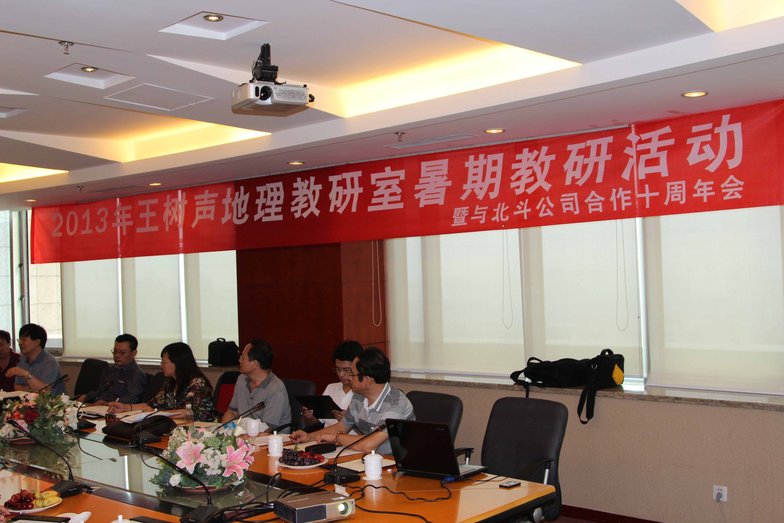 7月14日,王树声地理教学研究室年会在北京市隆重召开。王树声先生致开幕词,他首先向放弃休息时间的与会老师表示诚挚的谢意。并回顾了教研室与北斗公司成功合作十年及稳步发展的历程。